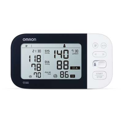 Tlakoměr Omron M7 Intelli IT dokáže provést tři po sobě jdoucí měření krevního tlaku v intervalu 30 sekund a poté zobrazí průměr, abyste měli reálný přehled o svém ranním a večerním krevním tlaku v průběhu času