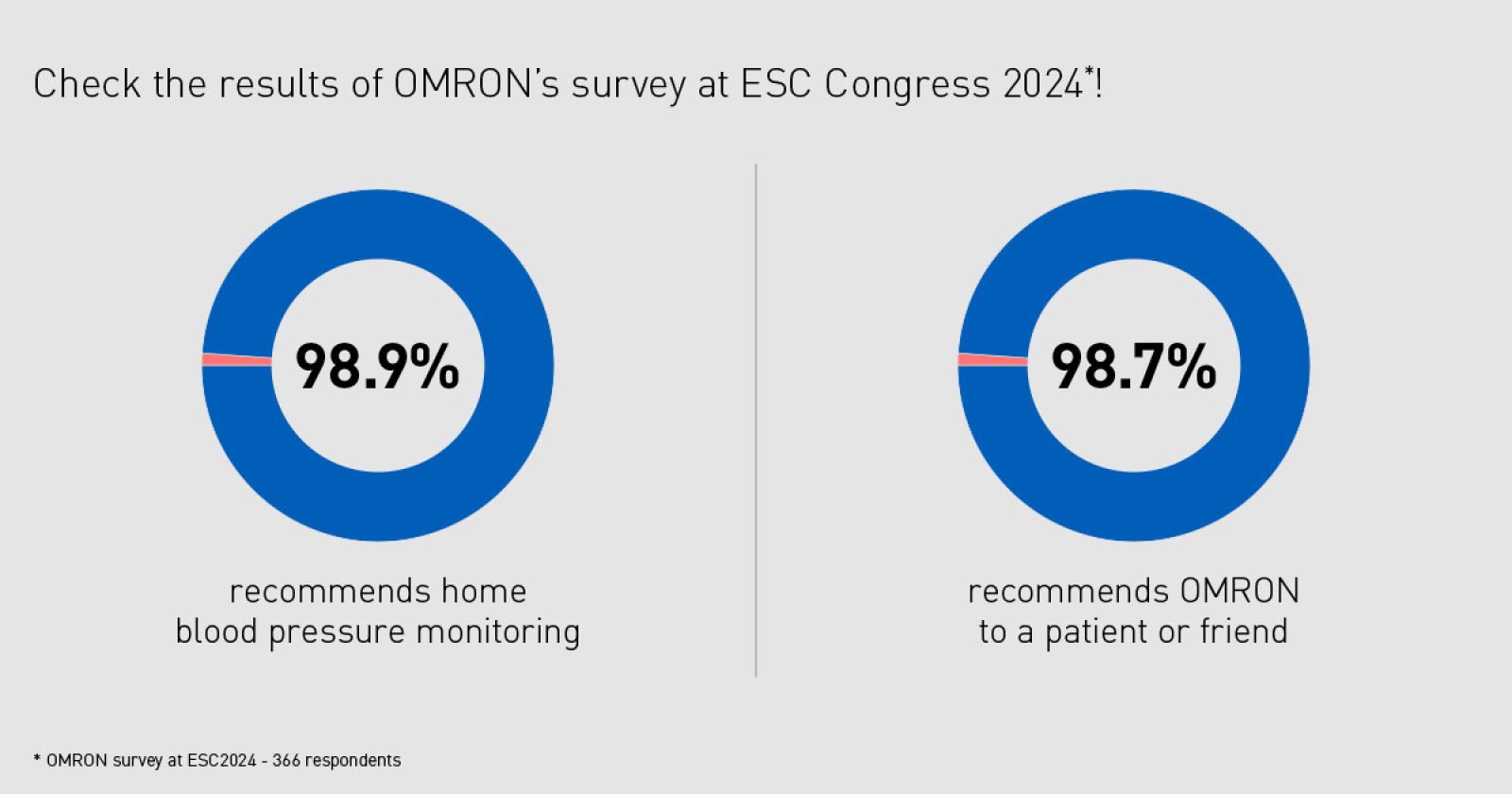 Z průzkumu jsme s potěšením zjistili, jakou důvěru mají zdravotníci v naše produkty, 98,7 % respondentů uvedlo, že by produkty OMRON doporučilo pacientovi nebo příteli.